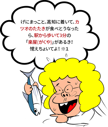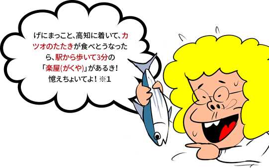 ※1【土佐弁】げにまっこと、高知に着いて、カツオのたたきが食べとうなったら、駅から歩いて3分の「楽屋(がくや)」があるき!憶えちょいてよ!