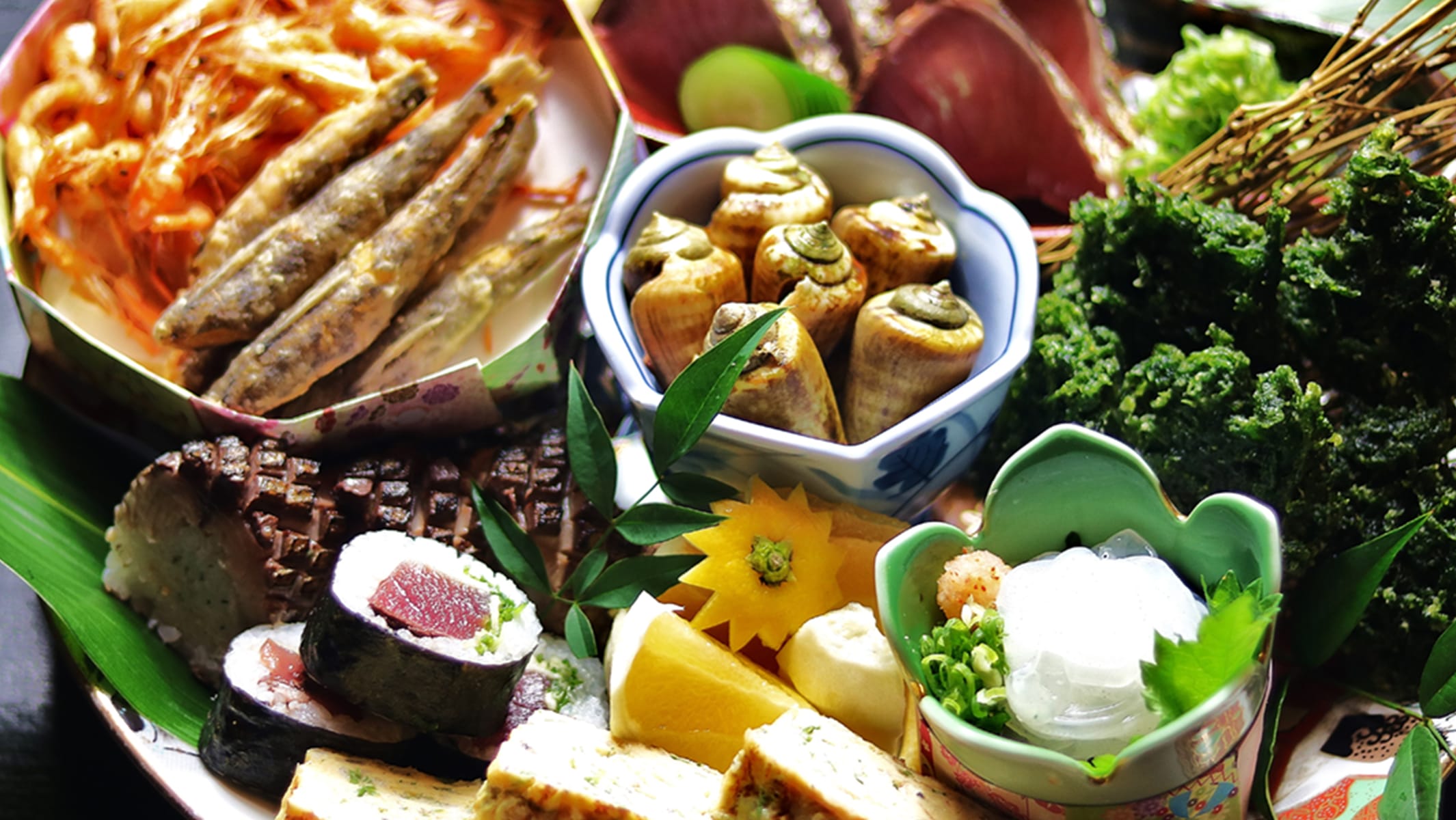 皿鉢(さわち)料理とは、高知で古くから宴会や集まりごとの時に大人数で囲んで食べる大皿料理のことです。魚介や郷土料理などをはじめ
